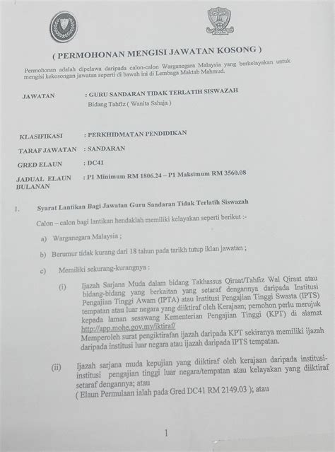 Sekolah rendah & menengah terpilih di negeri pembantu guru. Guru sandaran yayasan terengganu | senarai buku. Jawatan kosong hong leong banking. Sekiranya anda, seorang warganegara malaysia yang cukup syarat kelayakan dan berumur tidak kurang daripada 18 tahun pada tarikh tutup iklan jawatan adalah dipelawa untuk memohon bagi mengisi kekosongan jawatan tetap atau kontrak yang diiklankan. Calon yang berminat perlu buat permohonan dengan menghantar borang permohonan ke alamat yang.