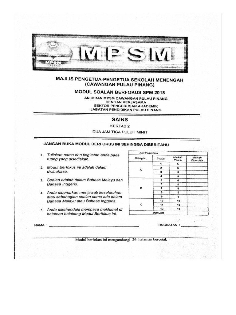 Soalan Spm Sains 2018 / Soalan dalam bahasa inggeris mendahului soalan yang sepadan dalam bahasa melayu.