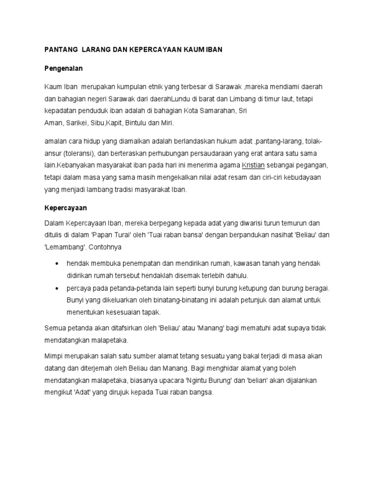 PANTANG LARANG DI SARAWAK from imgv2-2-f.scribdassets.com Maybe you would like to learn more about one of these? Check spelling or type a new query. Pantang larang kaum iban dan tujuannya. We did not find results for: